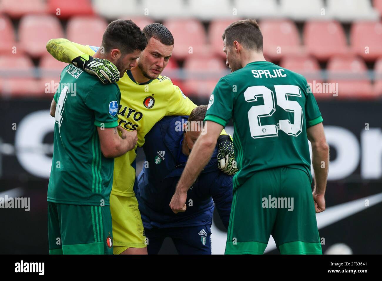 Utrecht Netherlands April 11 Goalkeeper Justin Bijlow Of Feyenoord Leaving The Pitch With An Injury During The Dutch Eredivisie Match Between Fc U Stock Photo Alamy