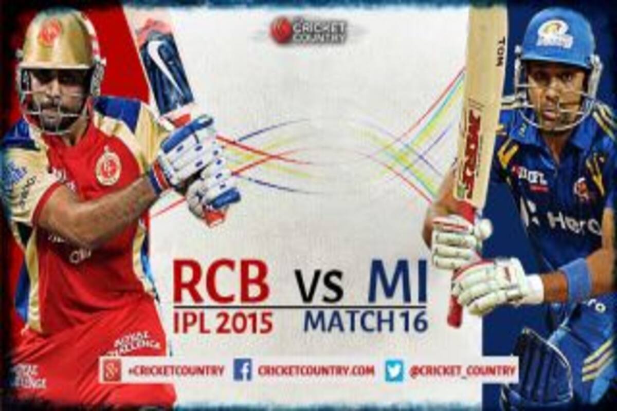 Live Cricket Score Royal Challengers Bangalore Vs Mumbai Indians Ipl 2015 Match 16 At Bangalore Rcb 191 7 In 20 Overs Mi Win By 18 Runs Cricket Country